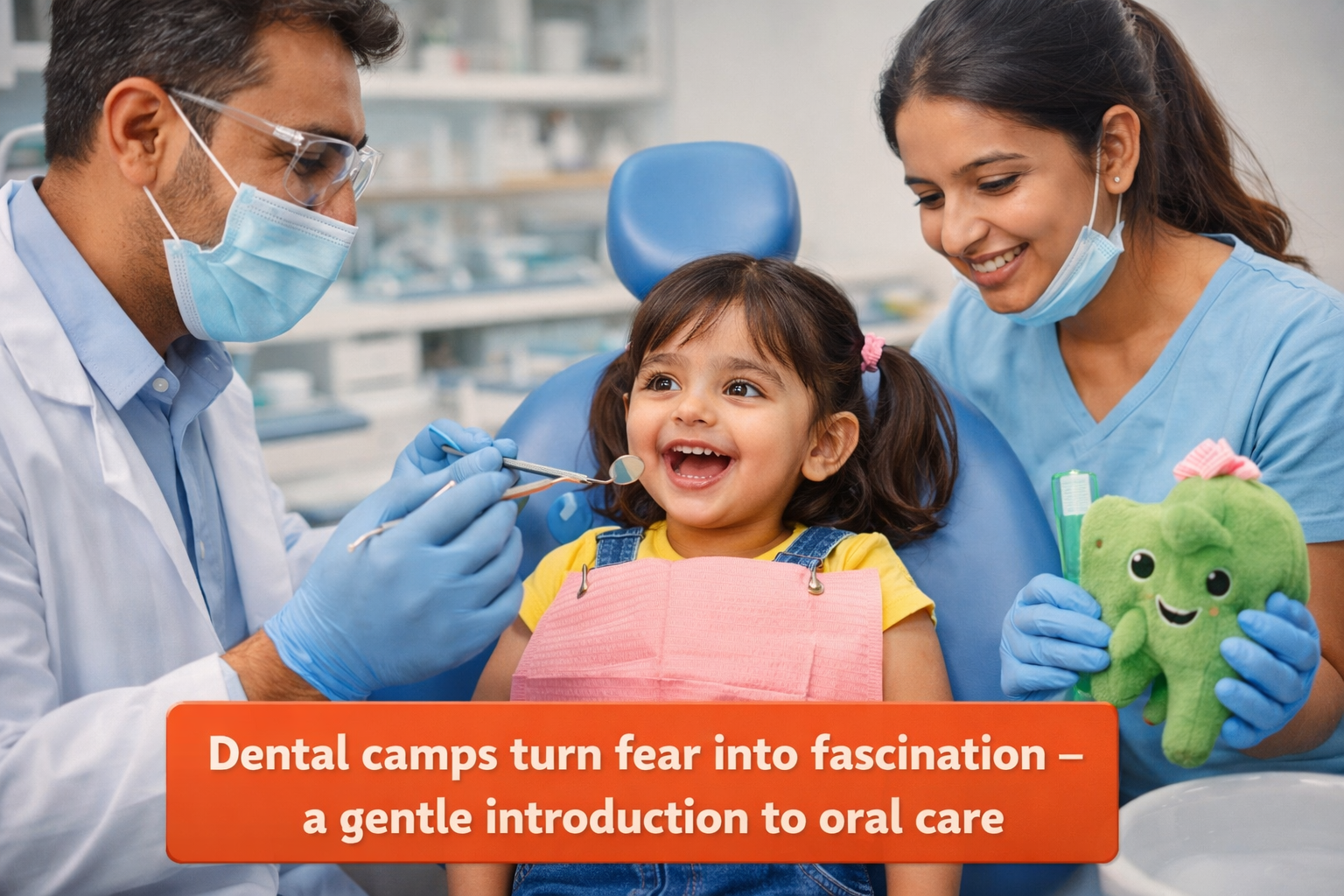 Then there’s the dentist – a place that often feels scary to children. That’s why introducing dental care early, through child‑friendly dental camps, is so powerful. When toddlers meet a gentle dentist outside of a clinical setting, fear is replaced with fascination when the dentist holds a mirror and examines a model tooth.